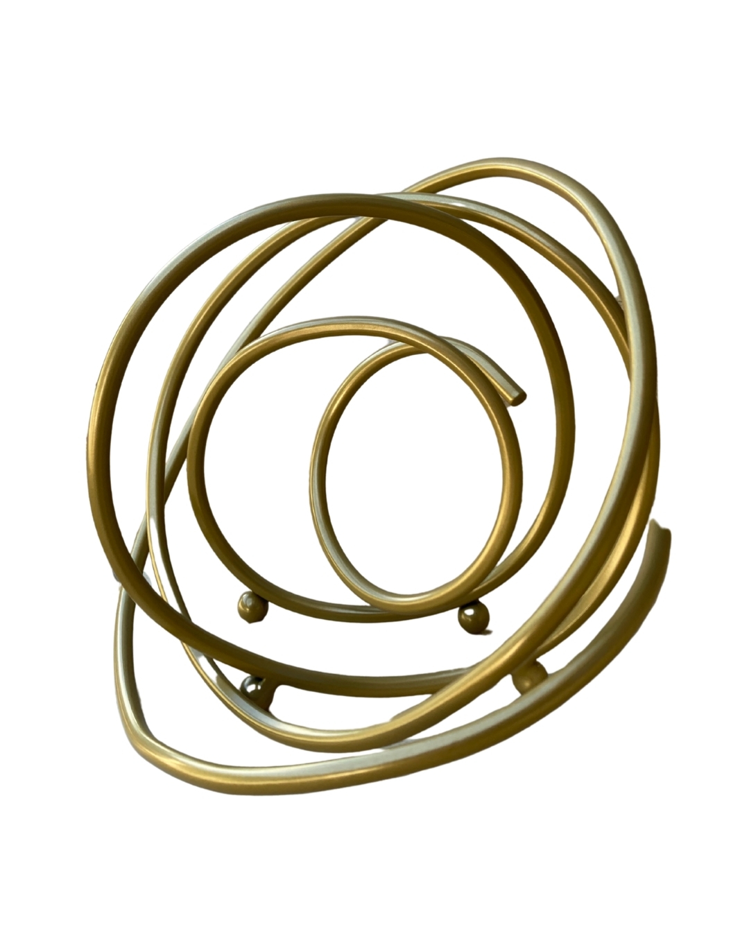 A Escultura Orbital na versão dourada é a escolha ideal para quem busca um toque de elegância e sofisticação na decoração. Seu design geométrico com arcos entrelaçados remete a órbitas planetárias e movimentos contínuos, criando um efeito visual impactante que transforma qualquer ambiente em uma verdadeira galeria de arte.